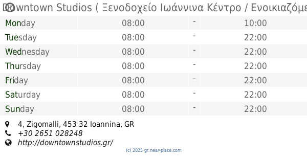| Monday | open 24 hours | |||||