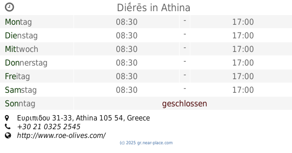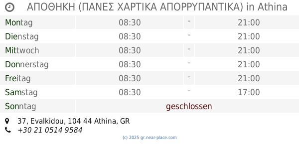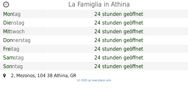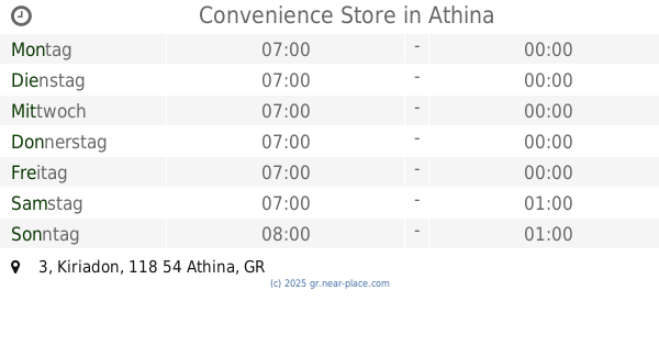 | Donnerstag | 24 stunden geöffnet | |||||